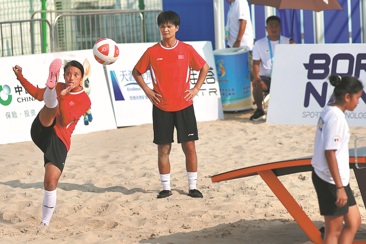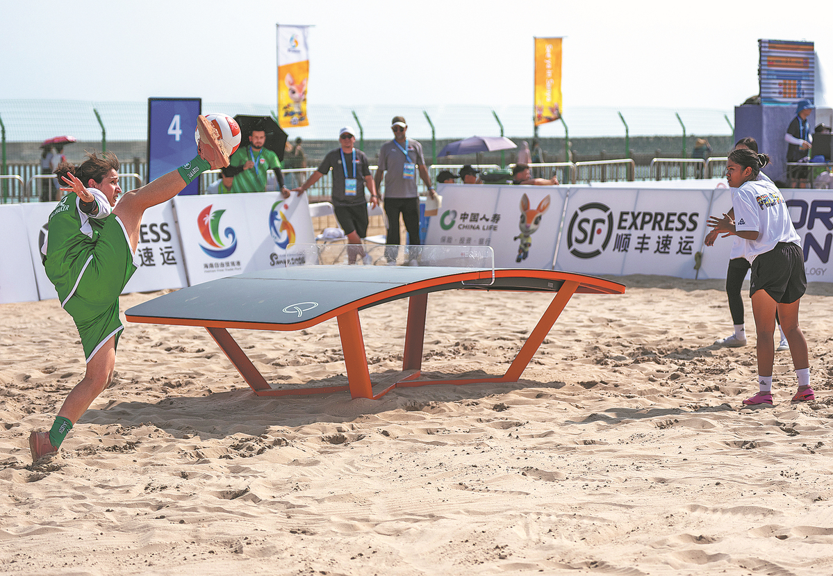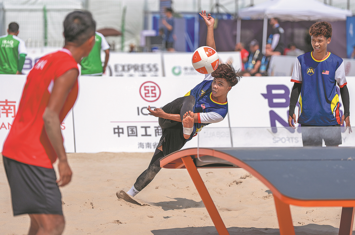 Beach teqball has been one of the biggest draws at the ongoing 2026 Asian Beach Games in Sanya, Hainan province. [Photo/Xinhua]