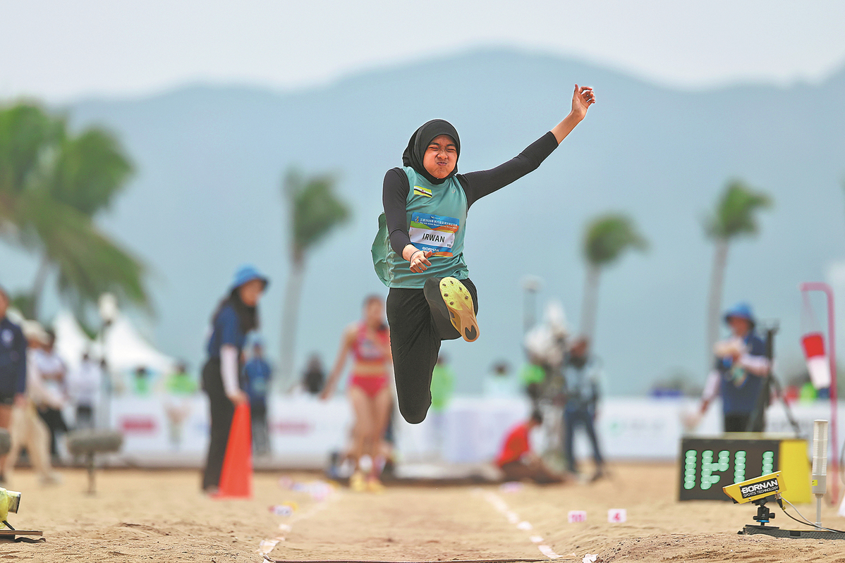 Asia's track and field elites have taken a leap into the unknown in the tropical island province of Hainan at the 6th Asian Beach Games, having their strength and adaptation tested like never before, delivering their best on unfamiliar surfaces. [Photo by Wei Xiaohao/China Daily]