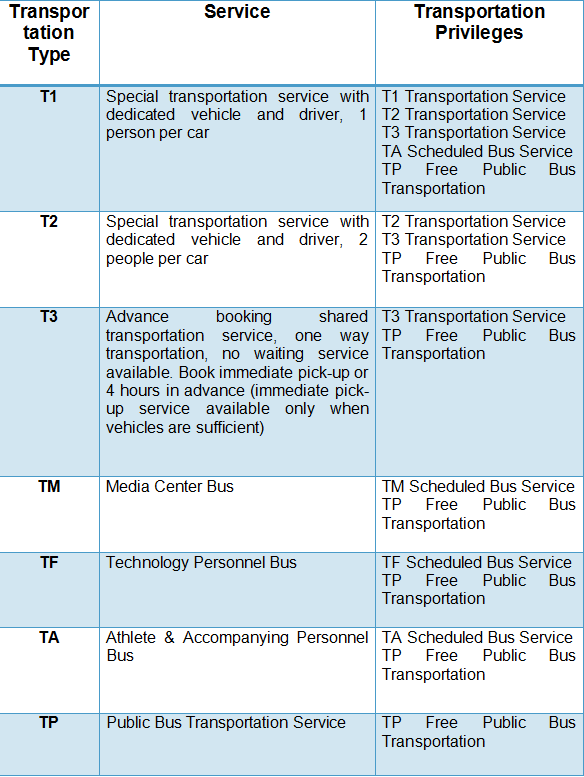 (4) Each Olympic Committee should notify the Organizational Committee of their delegation’s arrival time in advance, so that pick-up transportation service from the airport / train station can be scheduled.