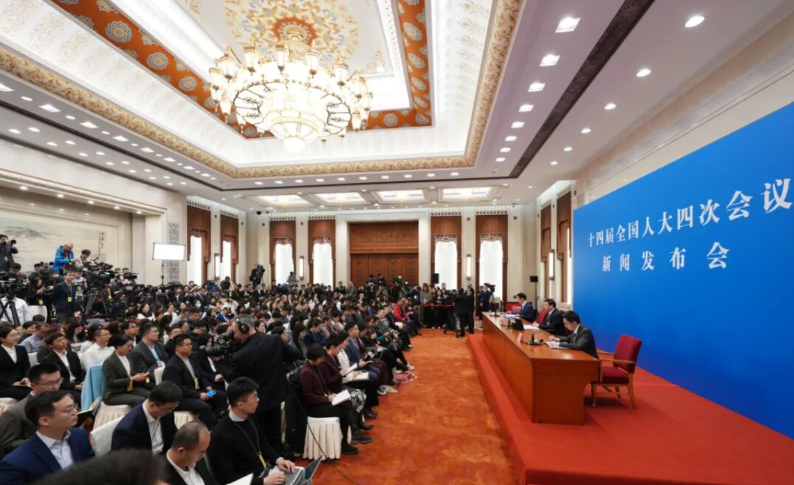 The press conference for the fourth session of the 14th National Committee of the Chinese People's Political Consultative Conferencet was held at the People's Great Hall in Beijing on March 4. (Source: Xinhua News Agency)