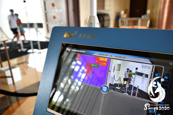 This is the intelligent temperature measurement system in front of the Atlantis Sanya (photo taken on March 12).Photo shot by Xinhua News Agency reporter Guo Cheng.