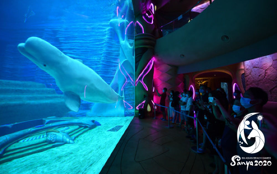 On March 12, tourists watch beluga at the Atlantis Aquarium in Sanya.Photo shot by Xinhua News Agency reporter Guo Cheng.